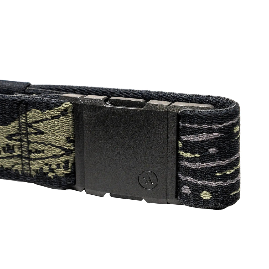 Get off-grid. The expanse of the mountain range, with performance stretch webbing to keep comfort on your side always. Features our patented A2 buckle that feeds and releases effortlessly, and conforms to your body.