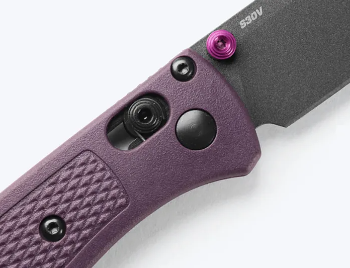 When searching for colors to freshen up our lineup of Mini Bugout® knives, we discovered a tone that embodied a kind of vibe in the outdoors that only lasts for a matter of moments. On the new 533GY-09 Mini Bugout®, the dark purple Grivory handle scales paired with a purple PVD mini deep carry clip and purple anodized thumb stud and barrel spacers were inspired by that cool, half-light at dusk that you see around the campsite before the dark of night moves in. Complete with a CPM-S30V stainless steel blade with a Cerakote Tungsten finish, the 533GY-09 carries light and tackles any task, outdoors or in.