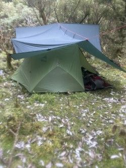 Great tarp, used on recent Fiordland trip to the Large Burn. Got the usual deluges of wind and rain to which the tarp stood up to magnificently. Packs up so small was an easy addition to my gear. It probably could do with more than 4 pegs but that aside I strongly recommend this product.