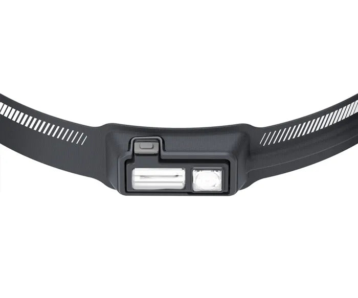 An update to the cult-favorite headlamp within the running world, Dash 450 delivers a perfect no-bounce fit with high performance illumination. Featuring improved beam optics for route visibility, new reflective graphics, and a balanced rear red light, see and be seen whether you’re on the road or the trail. Log miles with a near weightless feel thanks to the award-winning 3D SlimFit construction, moisture wicking band, and an ultra-slim front measuring only 9mm thick.