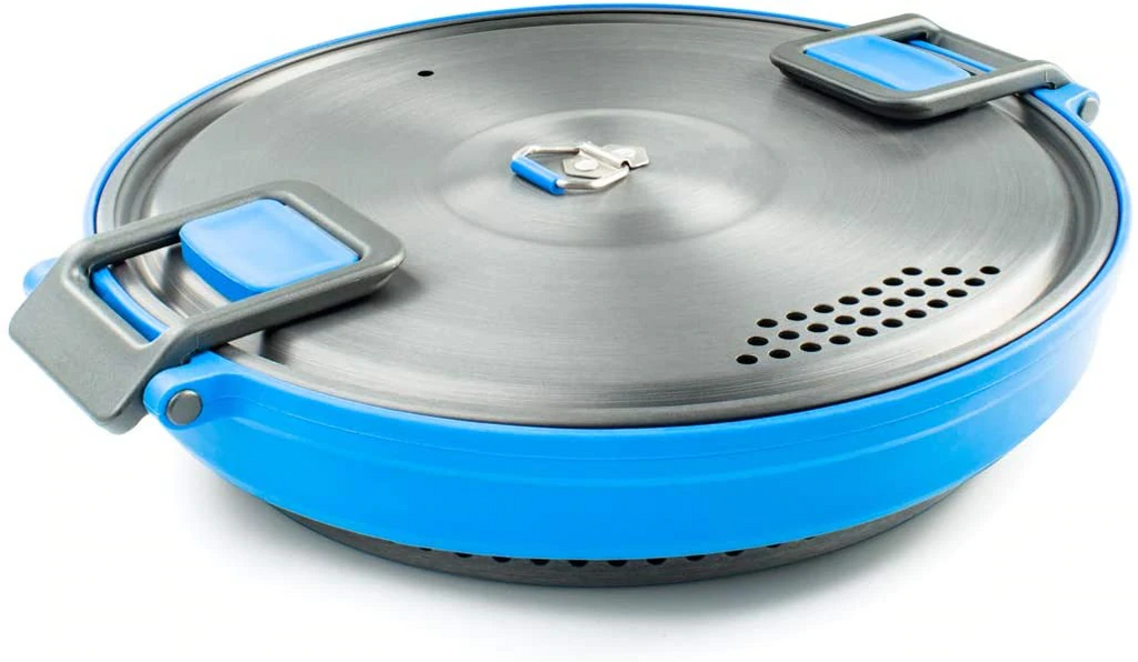 Silicone-sided pot collapses to a height of 2.1” for easy packing