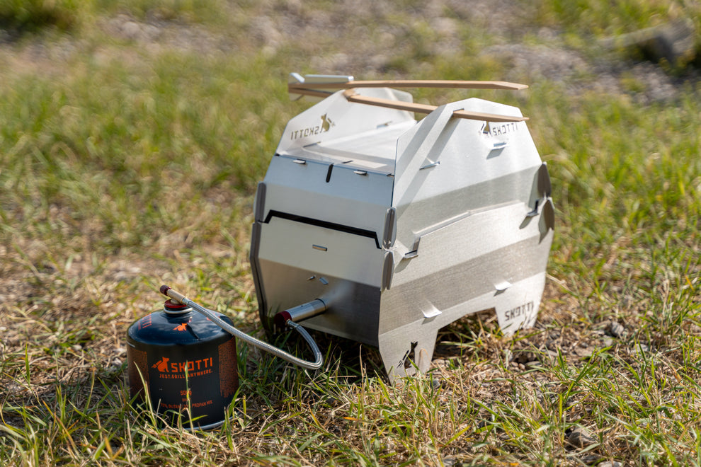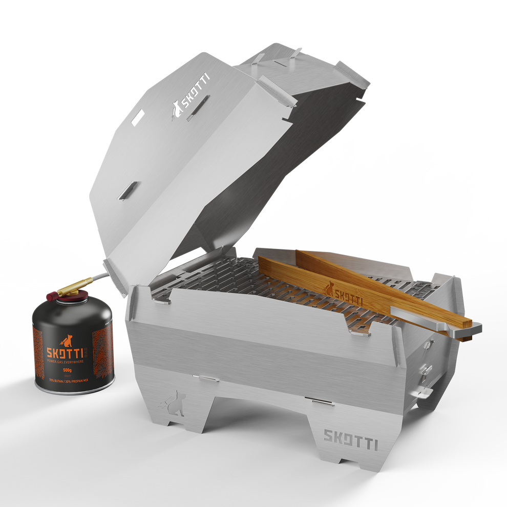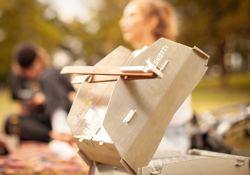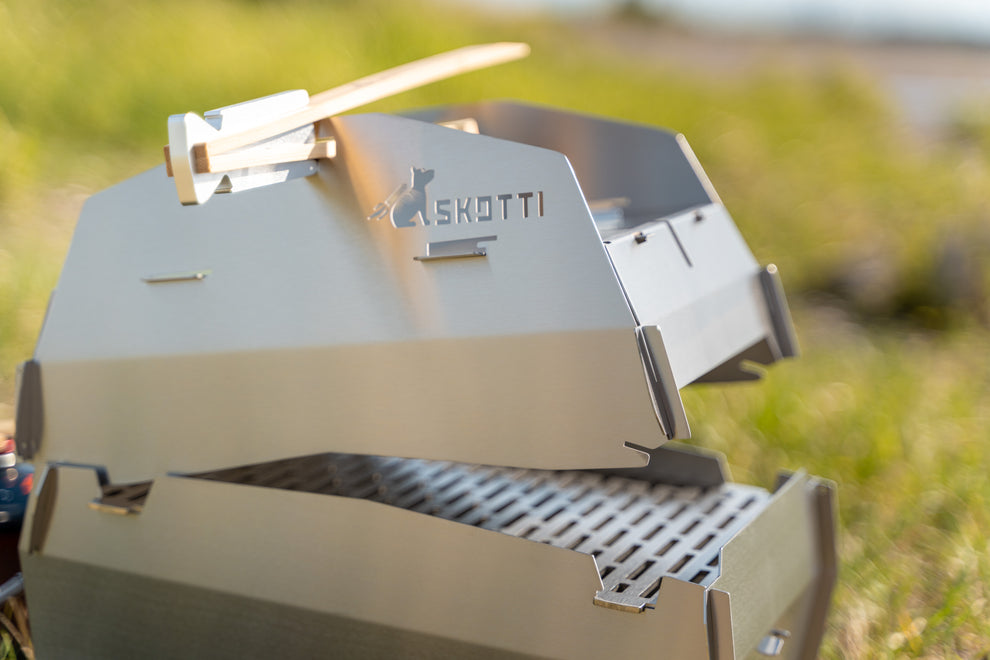 The SKOTTI Cap is our most multifunctional accessory. It broadens the range of food which you can prepare on the SKOTTI, especially food that requires longer cooking time. It makes grilling easy in windy places and on it?s flat on top so you can toast your burger buns. Put two or three stainless steel parts together and you have a simple windbreaker. Need a pizza oven? Leave one side open and you can bake your pizza.