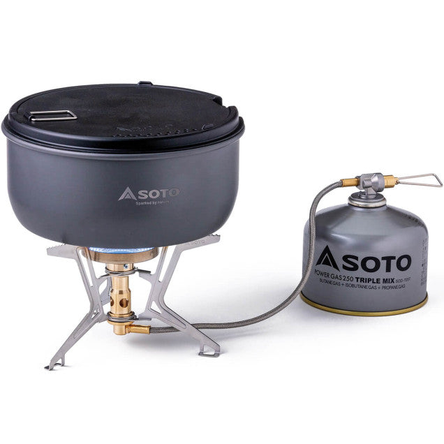 • Micro Regulator: a stove's output is reduced under lower ambient temperatures due to cooling of the gas canister when in use. This is an inherent weakness in gas stoves. SOTO's Micro Regulator provides a consistent flame, in cold weather and when used continually