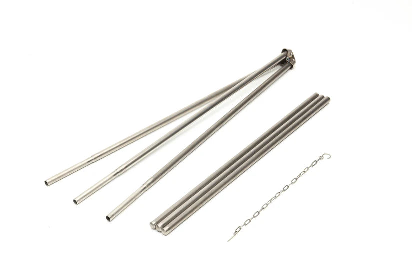 SKU: TRP-01 Material: All parts are made of titanium, including the chain Weight: 7oz (200g) Dimensions: Height when set up: 25" / 64cm