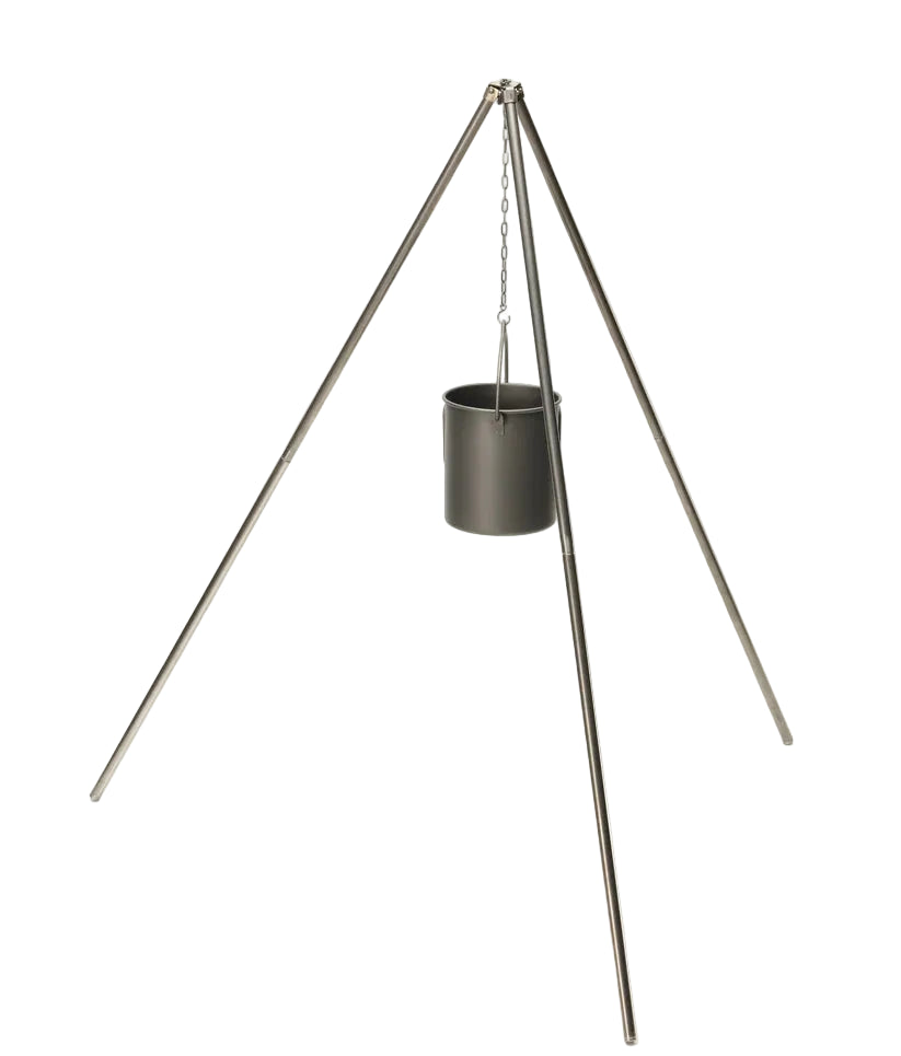 - Suspends cooking pots, tea kettles, coffee pots etc. over an open campfire