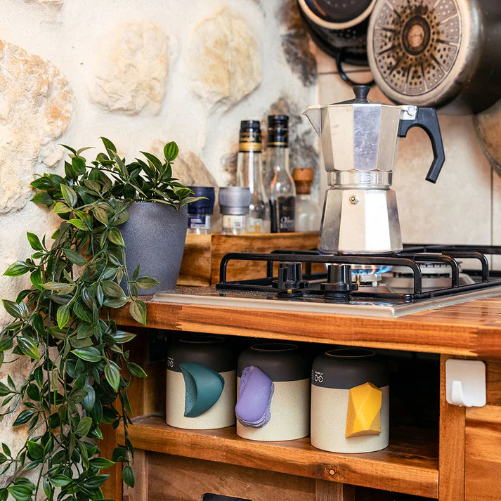 The Climbing Mug EVO is much more than just a mug: it's a miniature wall sculpture in your hand. Featuring a real climbing hold designed by shaper Simon Favrot, this 33 cl mug revisits the coffee experience with humor and technicality.