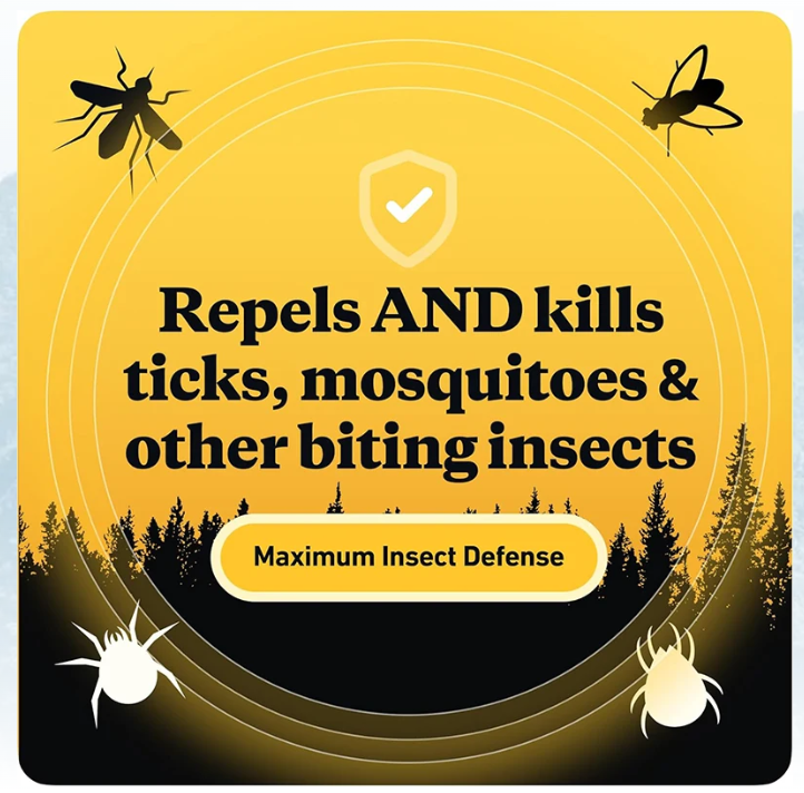 Repels mosquitoes which may carry the Zika Virus, Yellow Fever, Dengue, and Chikungunya. Repels and kills ticks which may carry Lyme Disease
