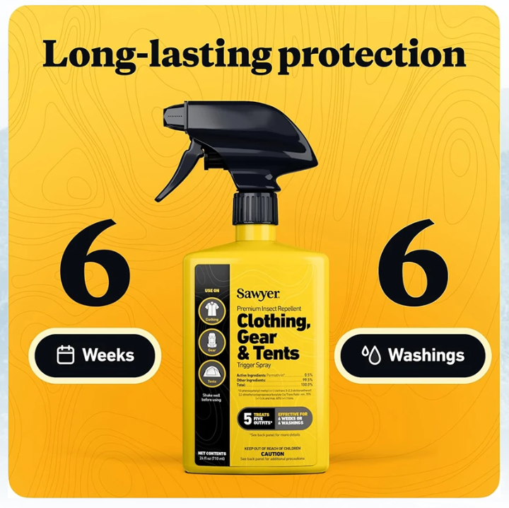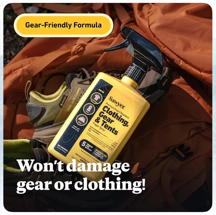 For use on clothing, tents, sleeping bags, and other outdoor gear, Sawyer Permethrin repels or kills disease-spreading ticks (Lyme disease), mosquitoes (West Nile and Zika viruses) and more than 55 other kinds of insects. Perfect for camping, backpacking, hunting, travel, backyard BBQs, picnics, and more, Permethrin insect and tick repellent adds an odorless layer of protection to shirts, jackets, pants, socks, shoes, sleeping bags, tents, netting, and other outdoor, camping, hunting, and travel gear.