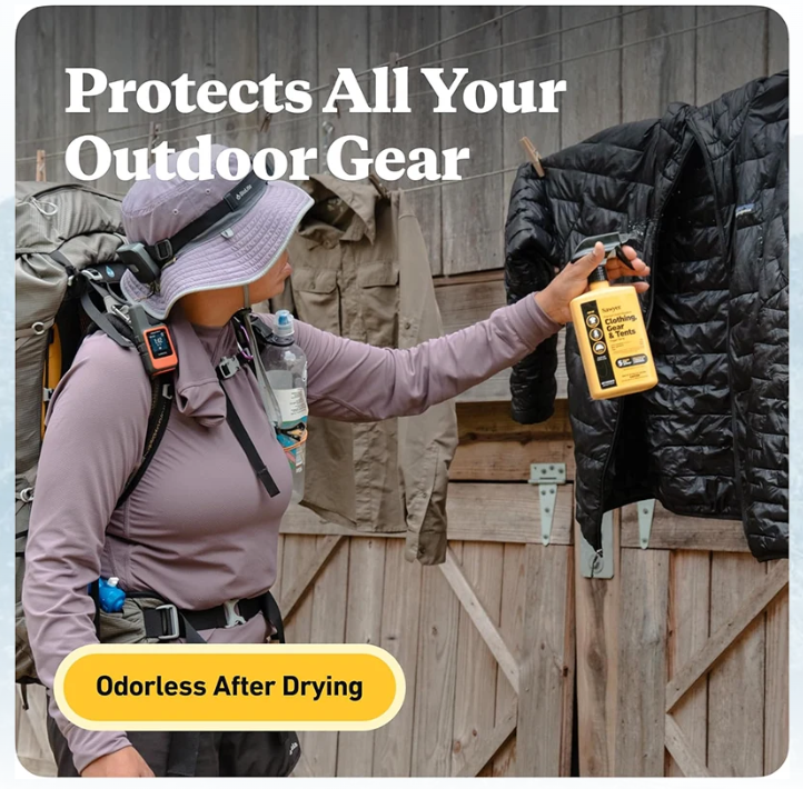 Using it on outdoor gear also helps reduce the mosquito population in your camp and prevents ticks from attaching to you. Permethrin spray bonds to fabric fibers for up to 6 weeks (42 days) of exposure to sun and air or 6 washings.