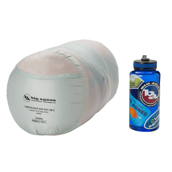 To pack down this bag to its minimum compressed size, we recommend pairing it with a Big Agnes Compression Stuff Sack or Superlight Girdle