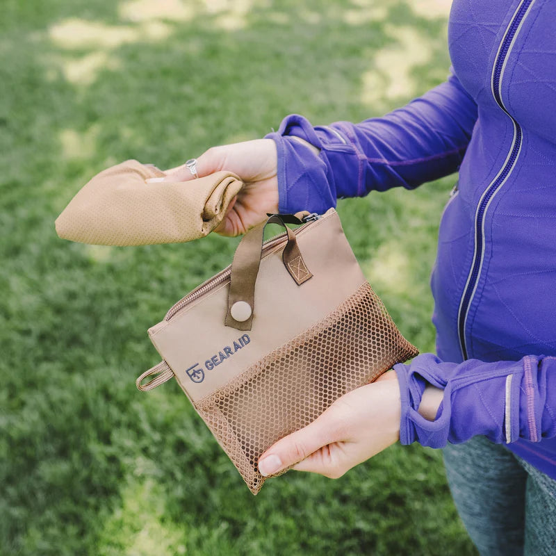 Maintain personal hygiene on-the-go with the GEAR AID Micro-terry Washcloth Kit. This lightweight and compact washcloth kit fits into packs and rucksacks without taking up much space. Featuring a hanging storage bag and two super-absorbent micro-terry washcloths, this toiletry kit makes it easy to stay clean and refreshed in any environment. A high-quality toiletry kit is essential when traveling or while out in the field. The Micro-terry Washcloth Kit is part of any basic grooming regimen.