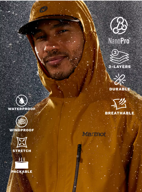 - 3L NanoPro™ waterproof fabric is durable, lightweight, and breathable