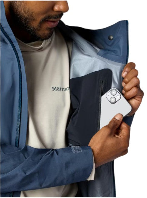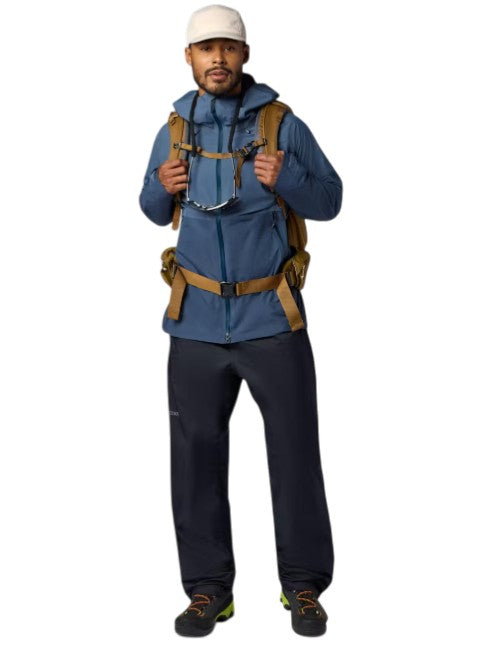 N THE ZONE. Brave alpine extremes, rough terrain, and relentless rain from trailhead to summit with a lighweight zoned-fabric design that boosts comfort, mobility, and durability where you need it most. 3L GORE-TEX® C-KNIT™ fabric is waterproof and windproof with an ultra-breathable knit backer and water-shedding C0 DWR (Durable Water Repellent). Durable plain-weave above the chest pairs with a seamless shoulder for increased packability, range of motion, and leakproof performance under a heavy pack. Ripstop fabric below the chest helps prevent snags and tears on rock, ice, or trees while offering lightweight breathability for high-output ascents. Two-way pit zips allow you to cool down quickly on grueling pitches, while a two-way center-front zipper and higher-placed hand pockes are essential for use with a harness and pack hip belt. VELCRO® adjustable cuffs, adjustable drawcord hem, and an adjustable, helmet-compatible hood ensure rogue raindrops and gusty peak winds don’t sneak in.
