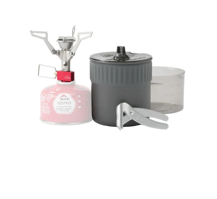 Includes: PocketRocket 2 stove, .75 L hard-anodized aluminum pot, BPA-free bowl & clear lid with drinking/straining ports, ultralight pot lifter.