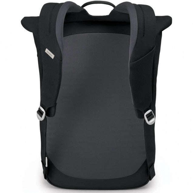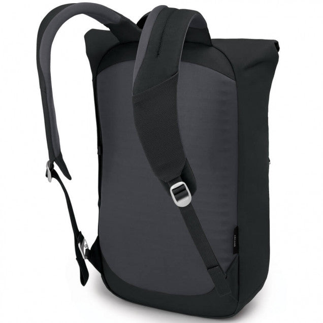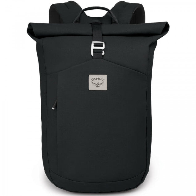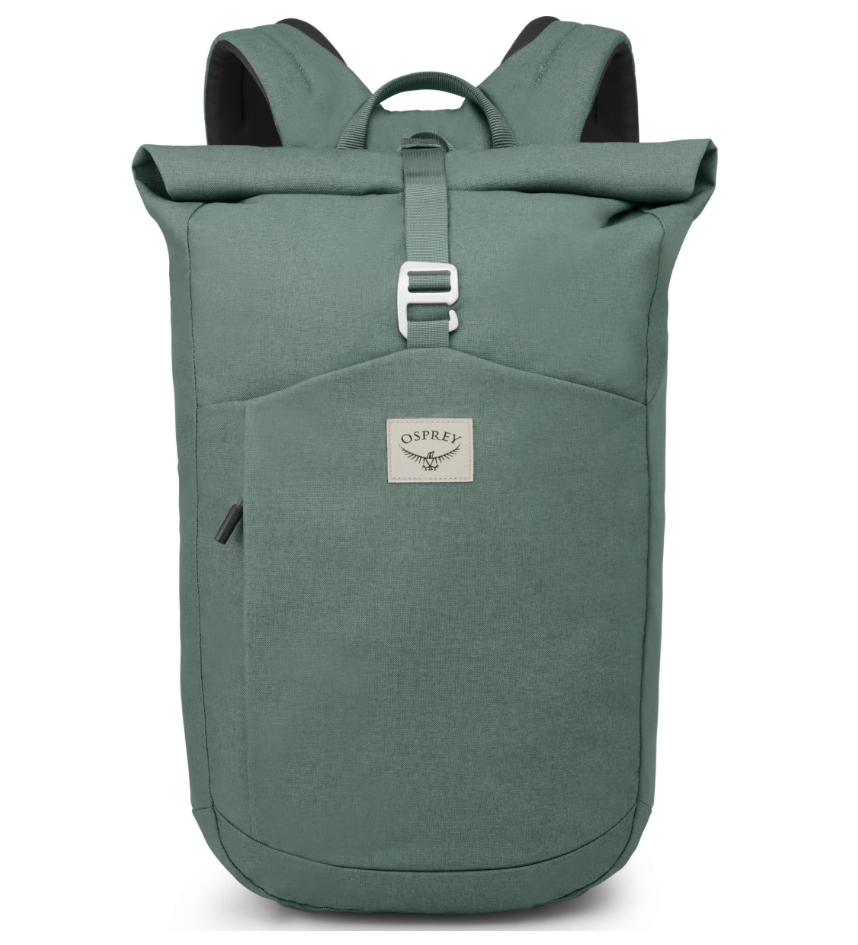 - Roll top main compartment opening with webbing and aluminum buckle closure