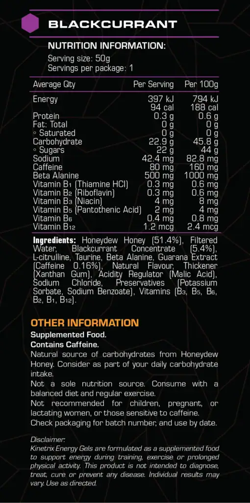 Kinetrix Energy Gel - Blackcurrant 50g
