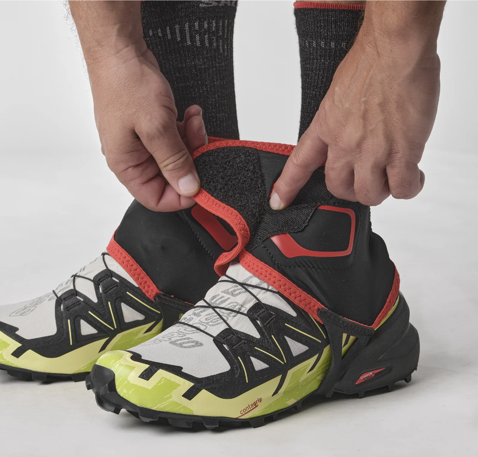 Get dirty. Get dusty. Gravelly, snowy, thorny, grassy, whatever the loose, aggravating terrain you decide to forge, TRAIL GAITERS HIGH will prevent it from reaching your feet. They connect easily to your shoes, and help to protect your ankles.