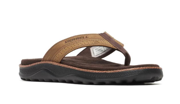 The Merrell Cove Leather Flip Men’s in Coffee delivers easygoing style and comfort for everyday wear, featuring a rich leather upper for a polished yet relaxed look, a soft manmade lining that feels smooth against the skin, and a durable manmade sole that provides reliable traction. A cushioned anatomic footbed supports the natural shape of your foot for lasting comfort, making this flip-flop a dependable choice for casual outings, vacations, and laid-back weekends.