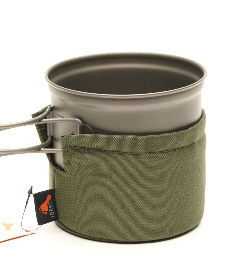 Featuring a durable canvas exterior and a reflective thermal insulation lining, the TOAKS Pot Cozy helps keep your beverages and food warm longer. It also makes holding a hot pot more comfortable, enhancing your mealtime experience in the backcountry.