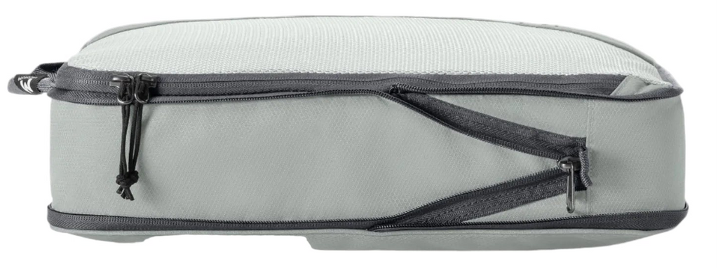 Stop rummaging for what you want. The mesh-topped compression packing cubes in the Pack-It® Reveal Compression Cube Set make it easy to spot rolled or folded clothing and accessories. This set's structured and compressible construction maximizes luggage space, and its 100% recycled fabrics are water-resistant.