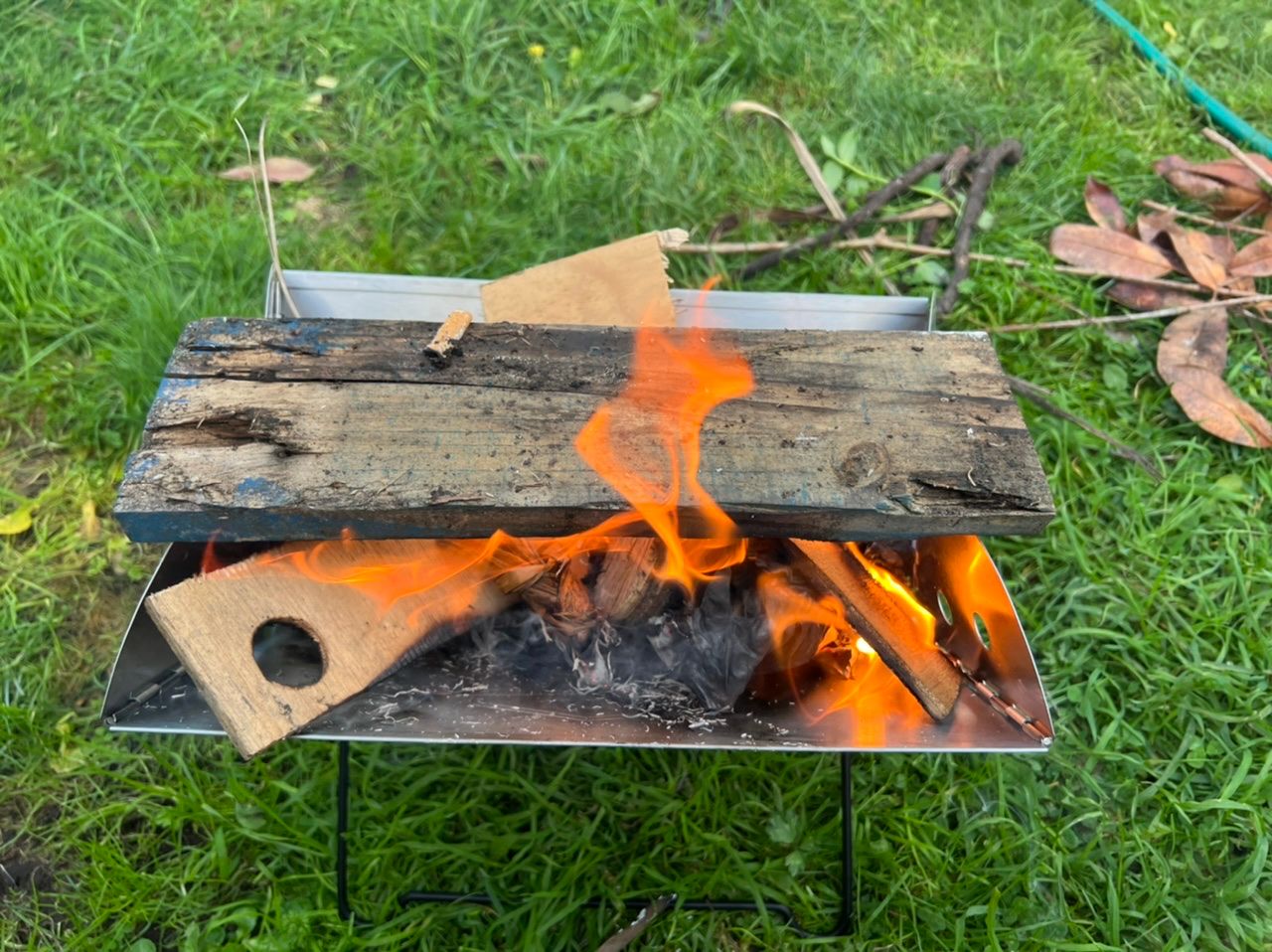 Brilliant little bit of kit. Provides some wind protection that a ground fire doesn’t along with ease of cooking on without the need for other accessories.