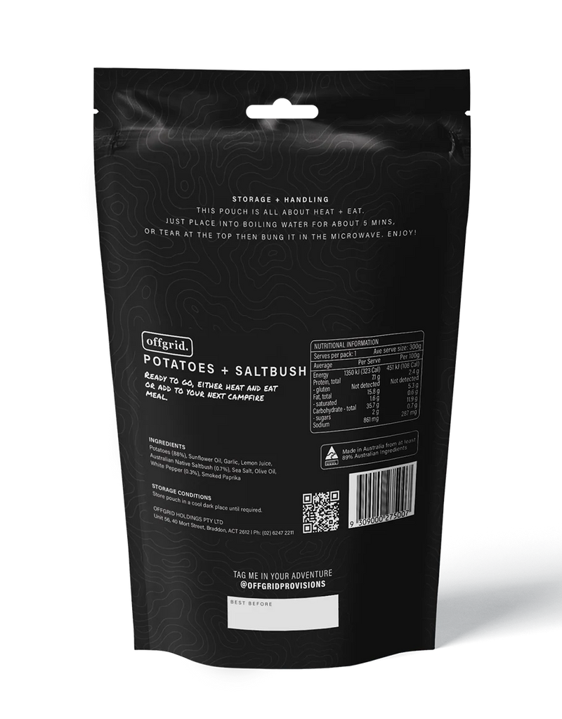 Batch made with wild harvested saltbush from South Australia and potatoes grown in the Gippsland region of Victoria. This recipes is great on its own with some good sour creme, or as a side with our Venison stroganoff.