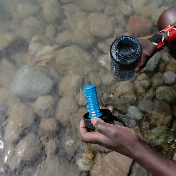 The water bottle cap that transforms your favorite wide-mouth water bottle into a fast-flowing, ready-to-go water filter.