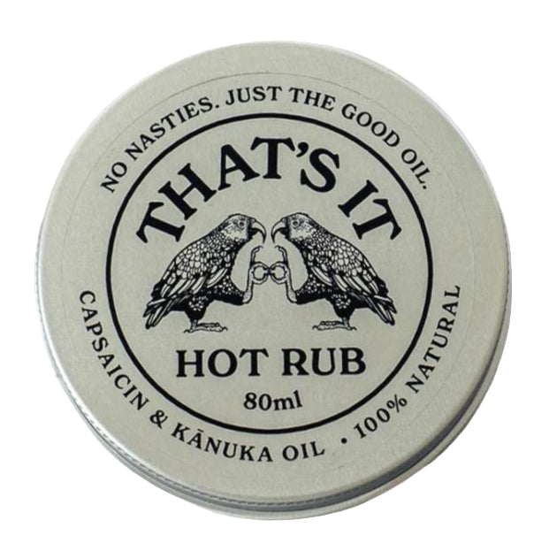 That’s It Hot Rub combines the natural benefits of high-grade New Zealand Kanuka Oil with the warming power of Capsaicin, making it an ideal companion for both pre- and post-exercise care to help boost circulation and support muscle repair.